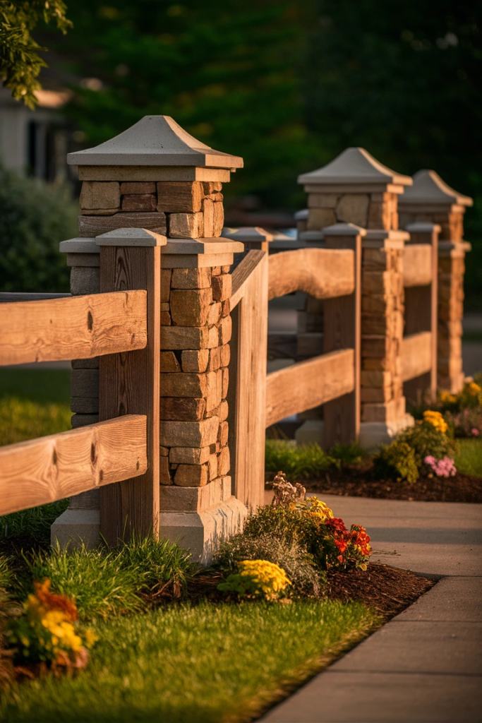 4. Stone and Wood Combination Fence