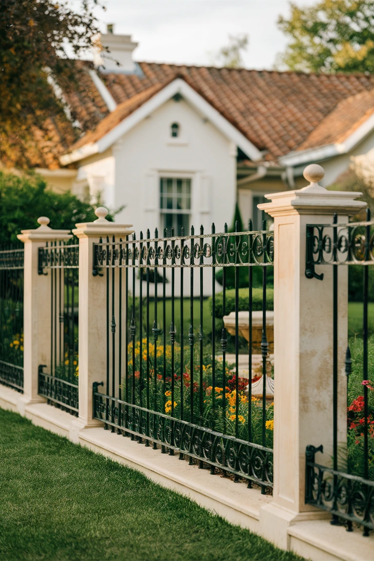 Wrought iron fences bring elegance with their decorative patterns. Ideal for historic or vintage-style homes, they offer durability and customizable designs. Occasional care is needed to prevent rust, but the stylish effect is long-lasting.