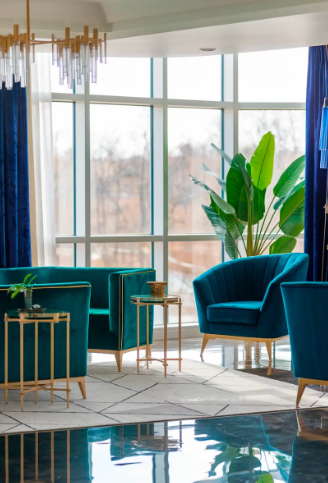 Luxury living rooms don’t have to rely on neutral shades. Jewel tones such as emerald green and sapphire blue, combined with gold accents, velvet furniture, or an elegant chandelier, can elevate a room’s sophistication. Using one or two bold colors as a base and layering metallics and textures ensures a polished, balanced look that feels both luxurious and inviting.