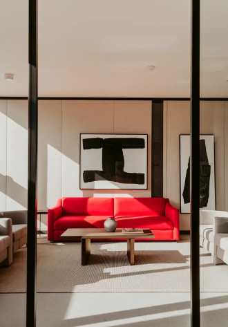 Minimalist living rooms can include striking color elements without losing simplicity. A bold red sofa or standout artwork adds interest while keeping the rest of the decor understated. This approach allows statement pieces to shine, creating a modern colorful living room that balances simplicity with visual impact.