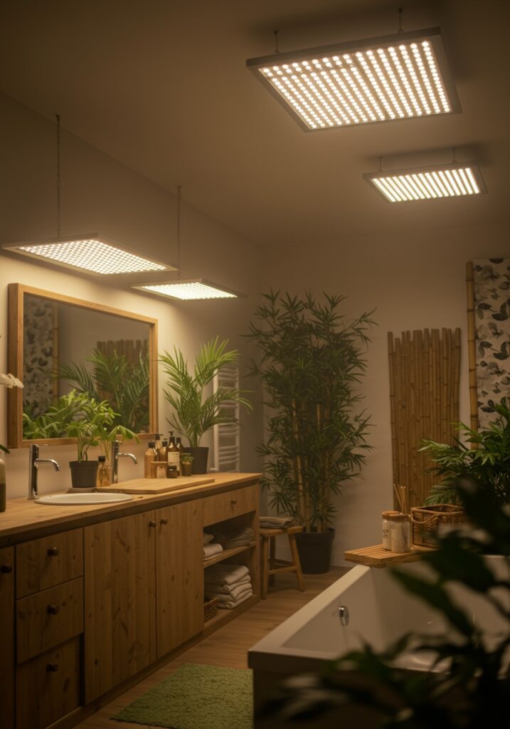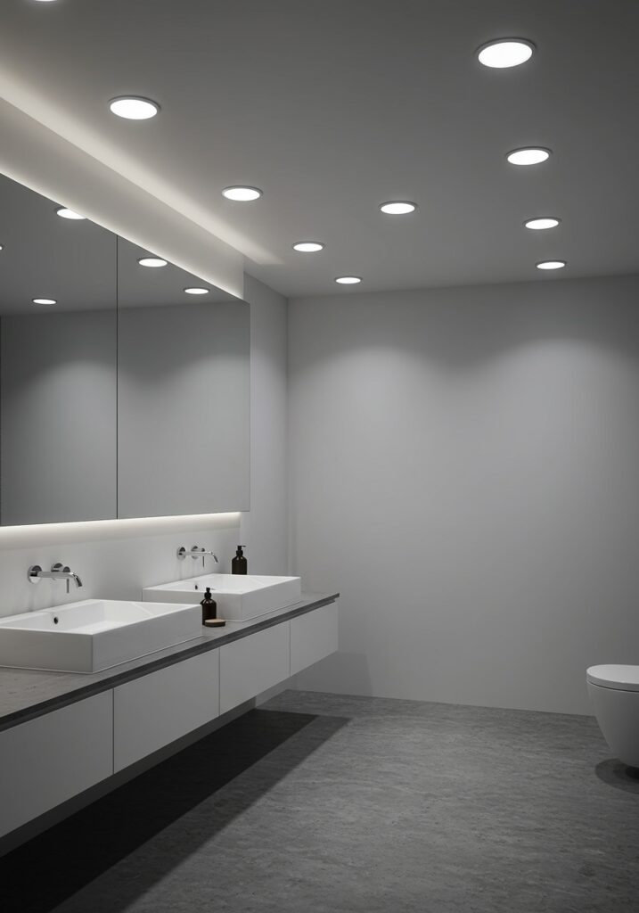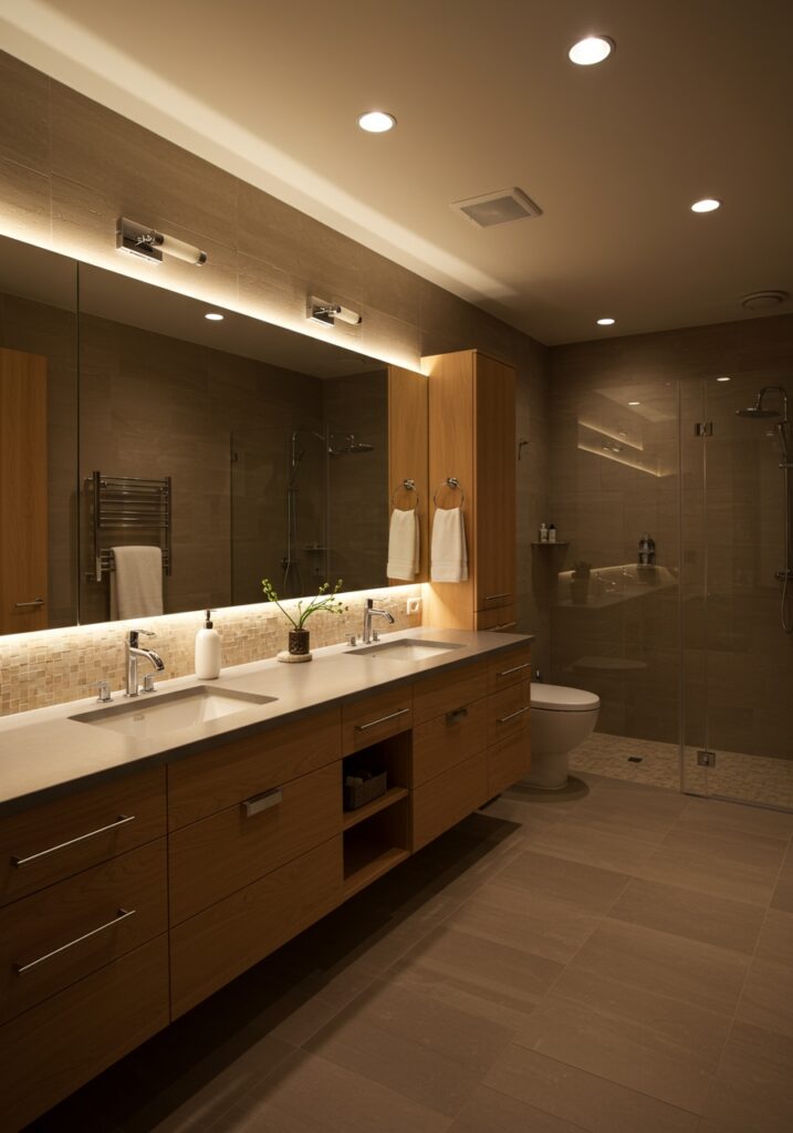 Layered lighting is what truly transformed my bathroom. Instead of relying on one light, I combined ceiling lights, vanity lights, and accent lighting.