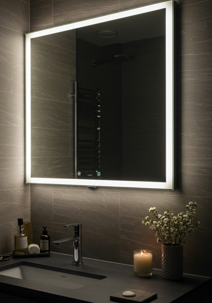 Backlit mirrors create a soft glow that feels calm and luxurious. I’ve used this in smaller bathrooms to avoid harsh lighting.