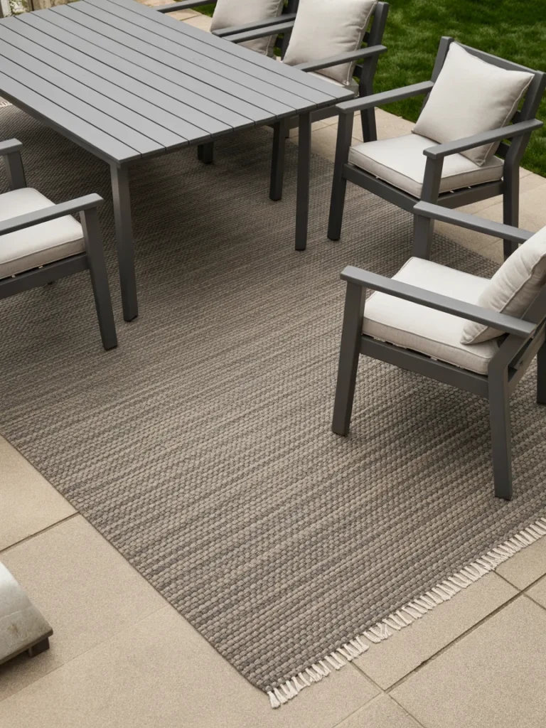 I treat outdoor spaces like indoor rooms. Rugs help define areas without permanent changes.