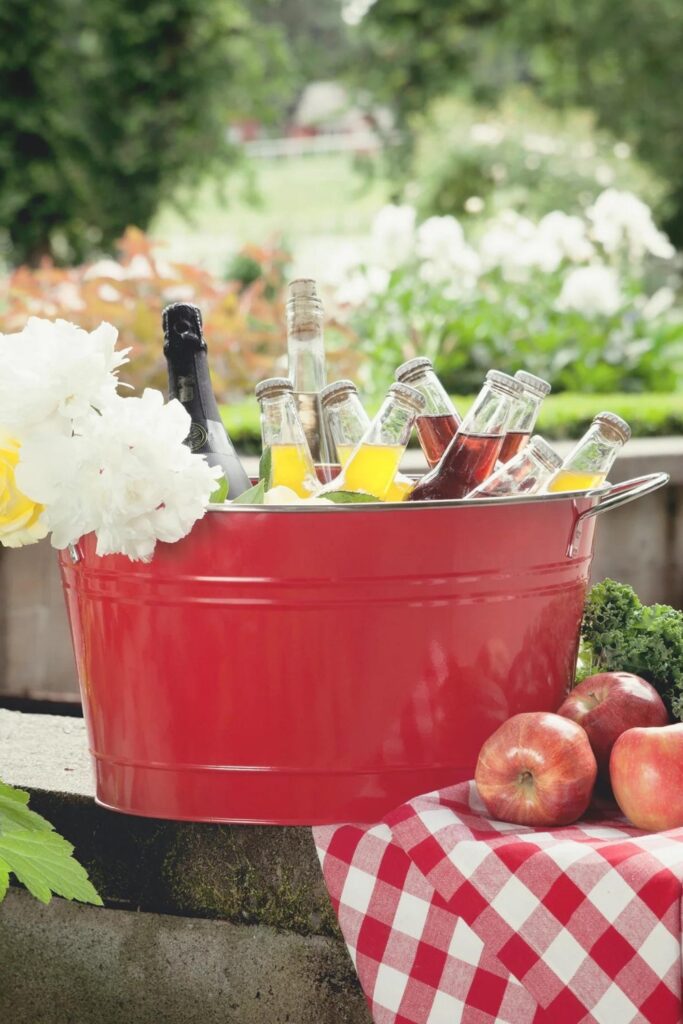 Galvanized tubs or metal bins filled with ice make drink stations easy. I separate beverages by type and add labels for clarity. Guests enjoy self-serve access, which keeps everyone refreshed without interrupting the party flow.