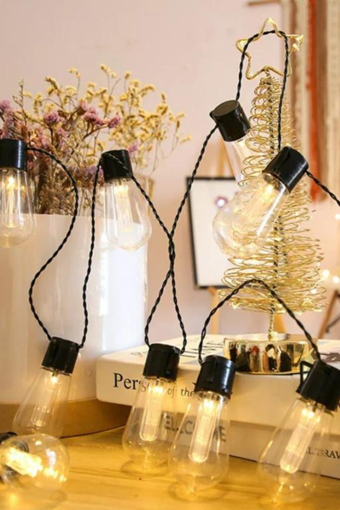 Decorative light bulbs are versatile. I clean old bulbs and fill them with fairy lights, flowers, or colored sand. Hanging them at different heights or placing them as table centerpieces adds a modern, rustic, or whimsical touch depending on the theme.