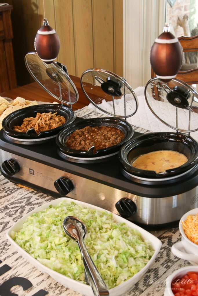 A taco bar makes food part of the decor. I arrange meats, vegetarian options, toppings, and shells on a festive table. Guests enjoy building their own tacos, and coordinating colors with the theme keeps the setup visually appealing and appetizing.