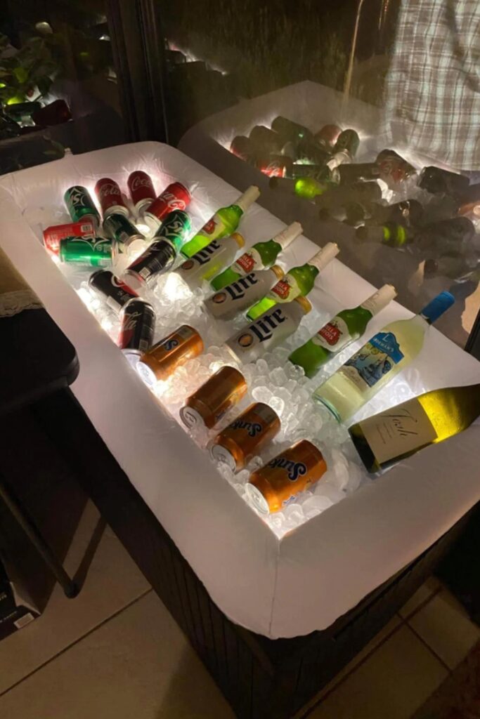 An inflatable bar keeps drinks cool and accessible outdoors. I fill it with ice and a mix of beverages, so guests can serve themselves. This saves trips to the fridge and adds a playful element to the setup, perfect for casual or summer events.
