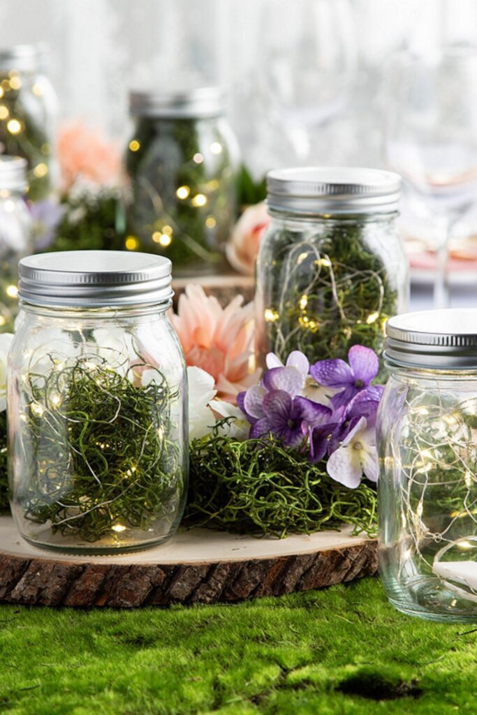 Mason jars are an easy centerpiece option. I fill them with flowers, candles, or fairy lights, mixing textures and colors to match the theme. These simple arrangements are budget-friendly yet visually appealing and adaptable for indoor or outdoor setups.