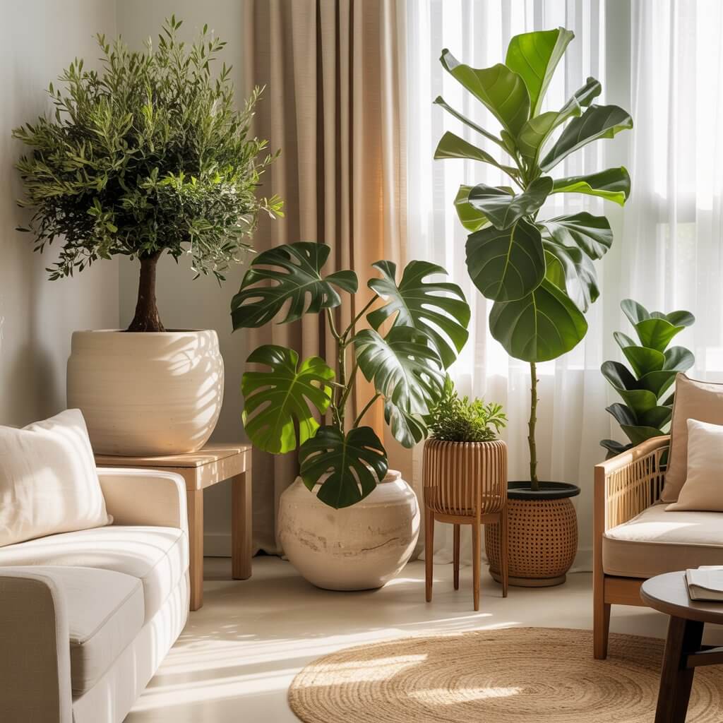 5. Big Indoor Plants (Especially Olive Trees & Monsteras)