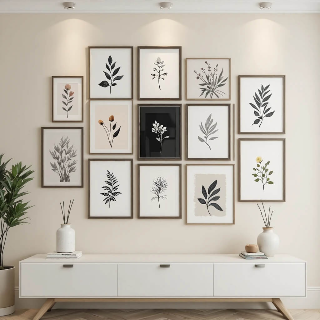 Gallery walls are back, but now they’re more structured and simple. I stick to a limited color palette for a clean look.