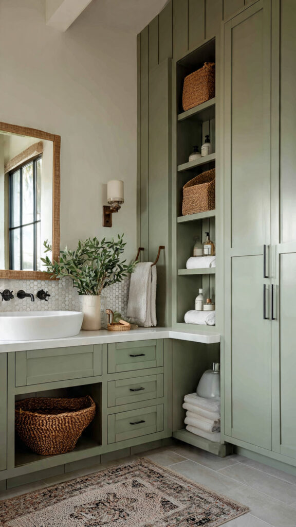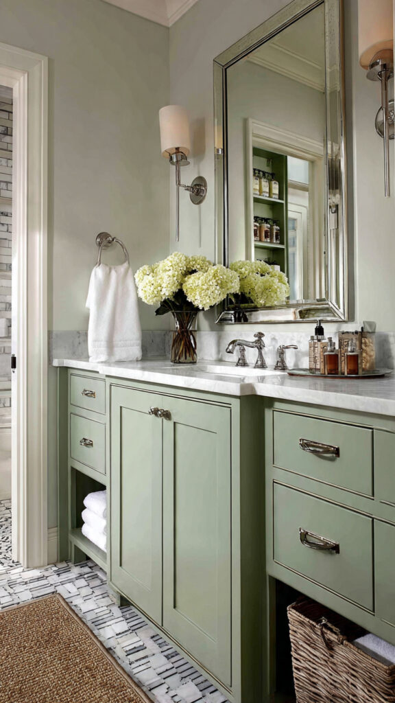How to Style Sage Green Bathroom Cabinets