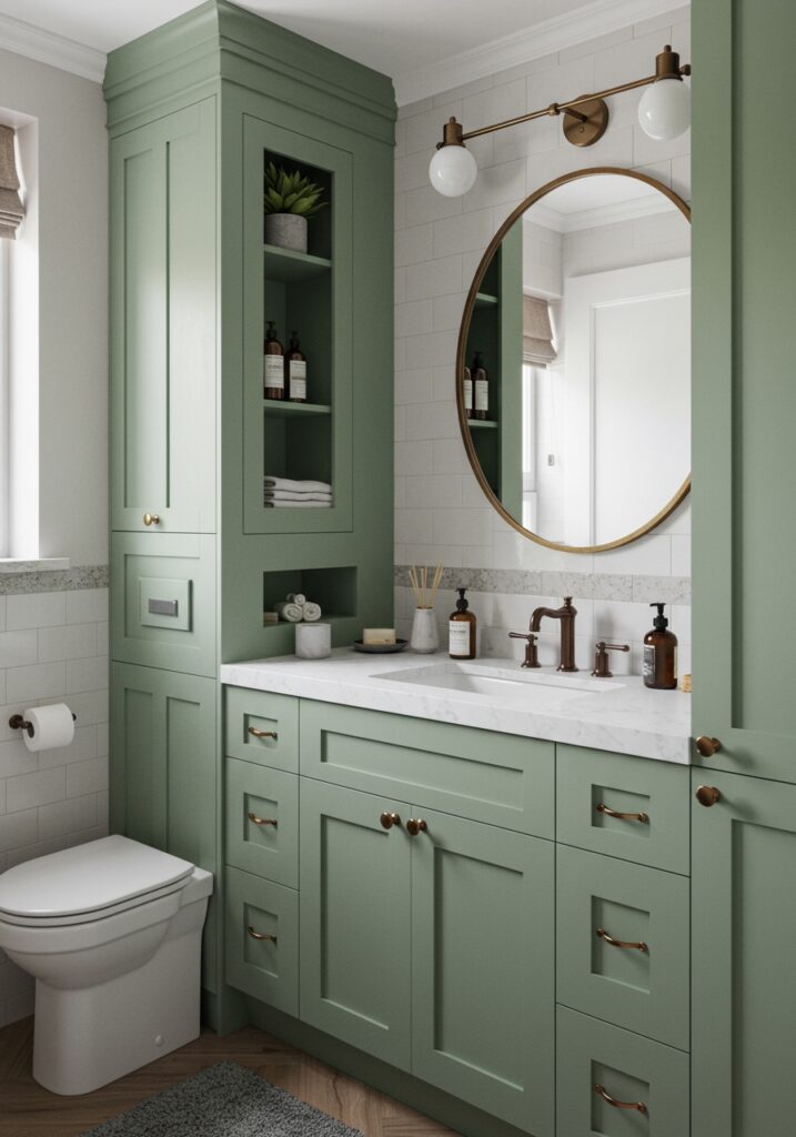 Sage Green Cabinets in Small Bathrooms