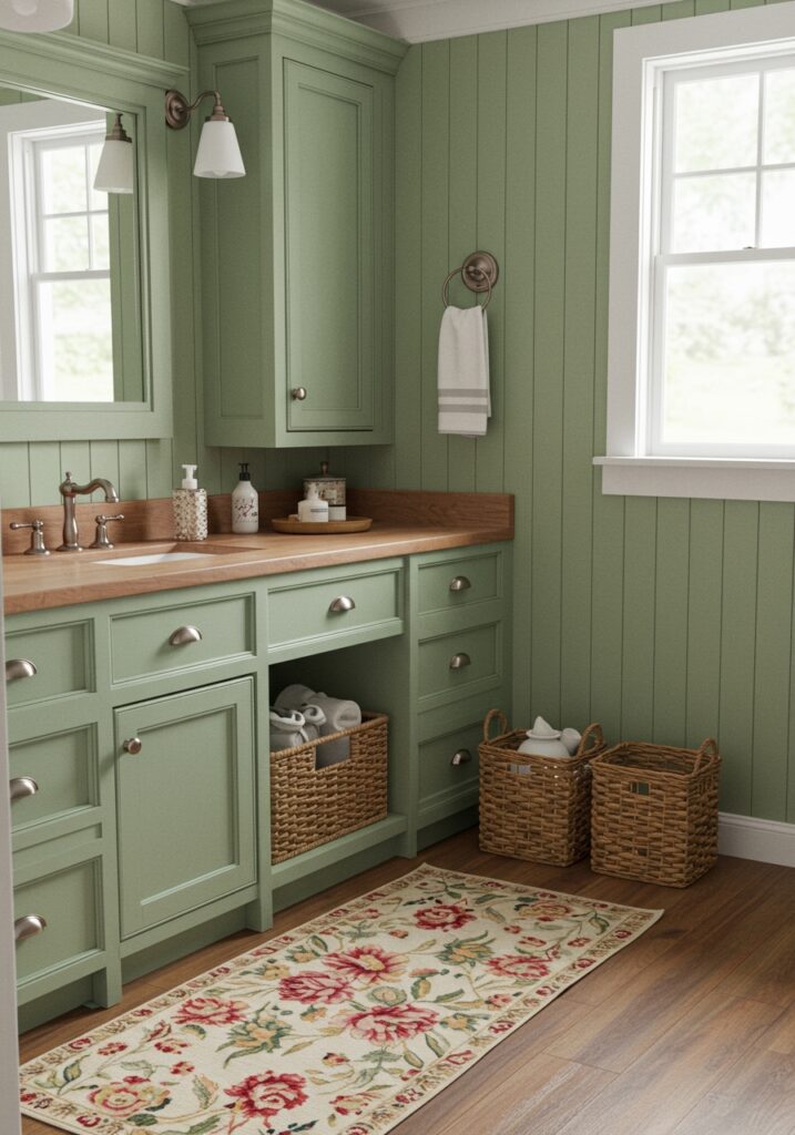 Cottage-style bathrooms always feel warm and inviting to me. Sage green fits perfectly into this theme.