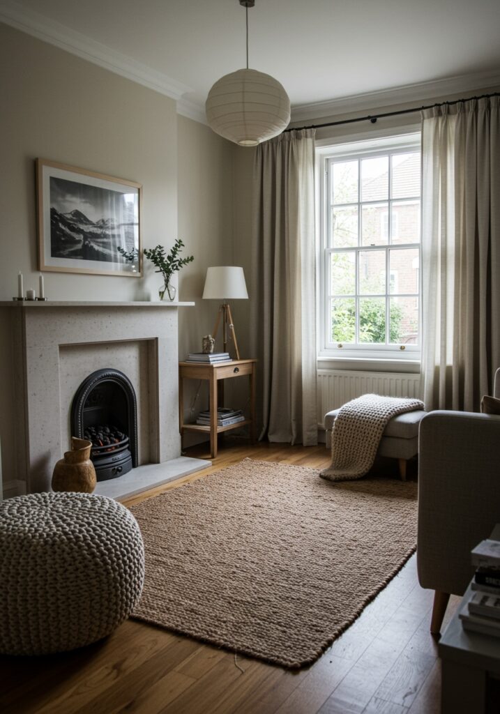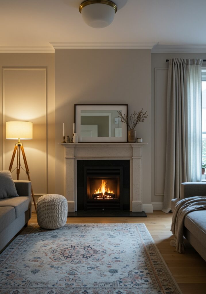 Mirrors are powerful in small rooms. Placing one opposite the fireplace reflects light and makes the space feel larger. Tall mirrors on narrow walls draw the eye upward, enhancing the sense of height. Keep decorative items minimal but impactful—fewer, larger pieces look more intentional than many small accessories.