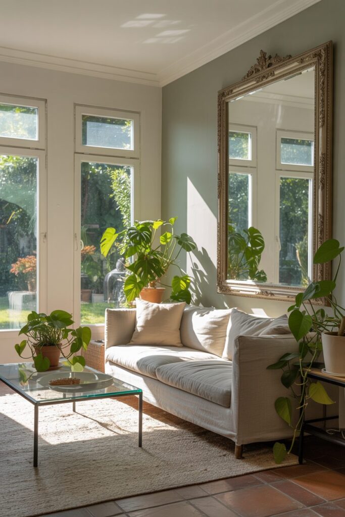 Using reflective surfaces along with lighter colors creates a more open atmosphere. Instead of feeling boxed in by walls, the living room begins to feel balanced and comfortable, even if the square footage is limited.
