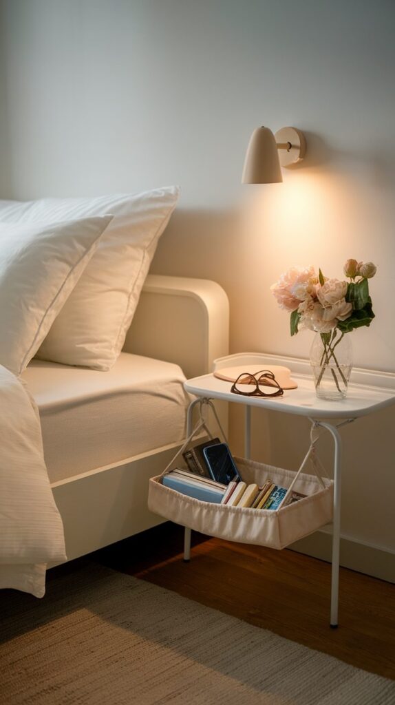 Selecting durable materials ensures the caddy remains supportive over time. For extremely tight layouts, this is one of the most efficient Smart Small Bedroom Organization Ideas available.