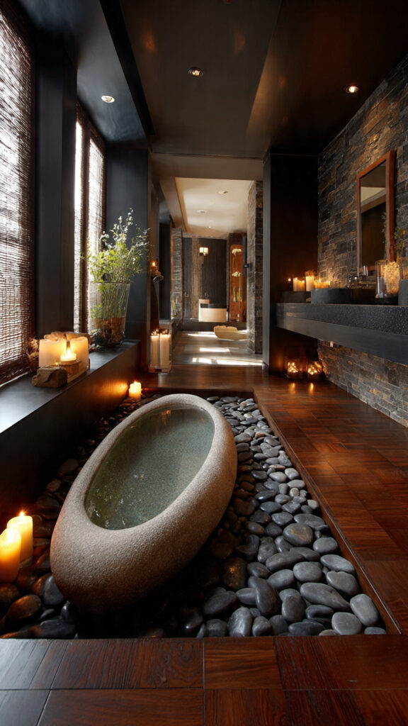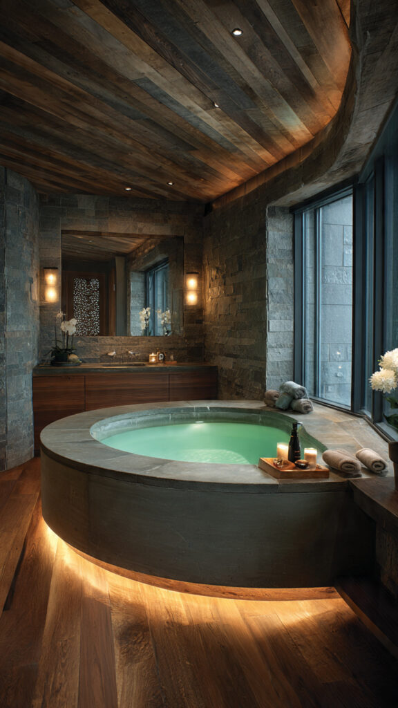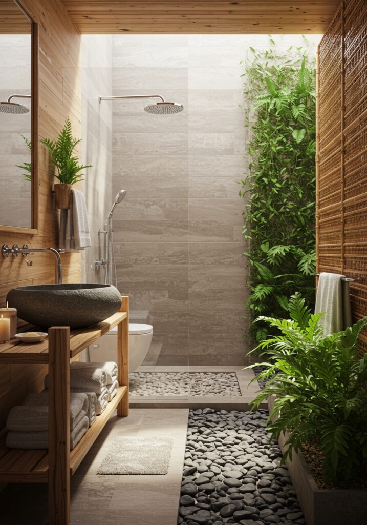 Wood and stone create a grounded look, and they also feel better to touch. This small detail adds a real spa-like experience without needing a full renovation.
