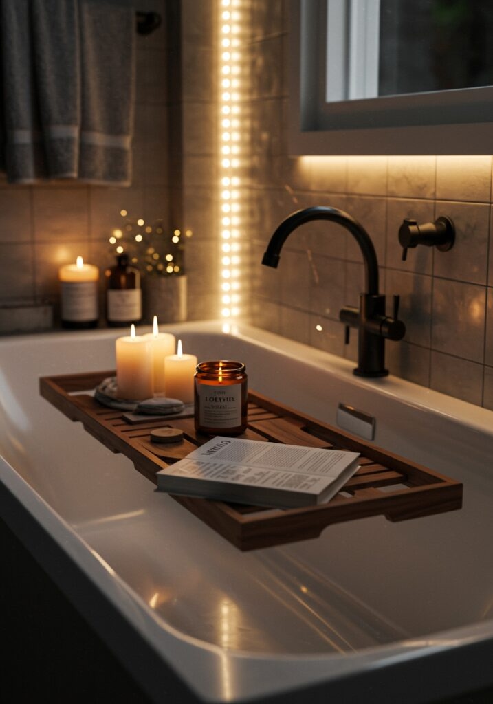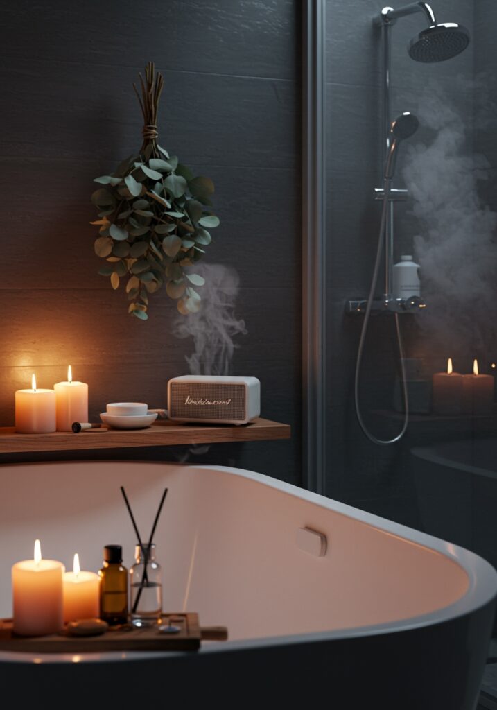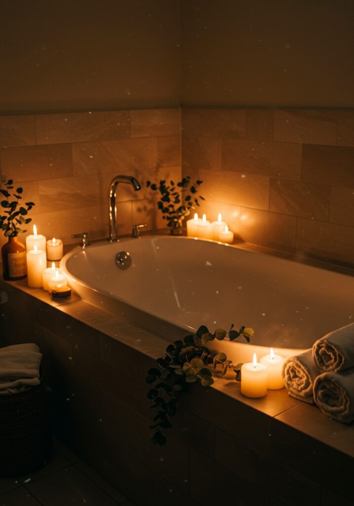 I add textures, scents, and small details for a real spa experience