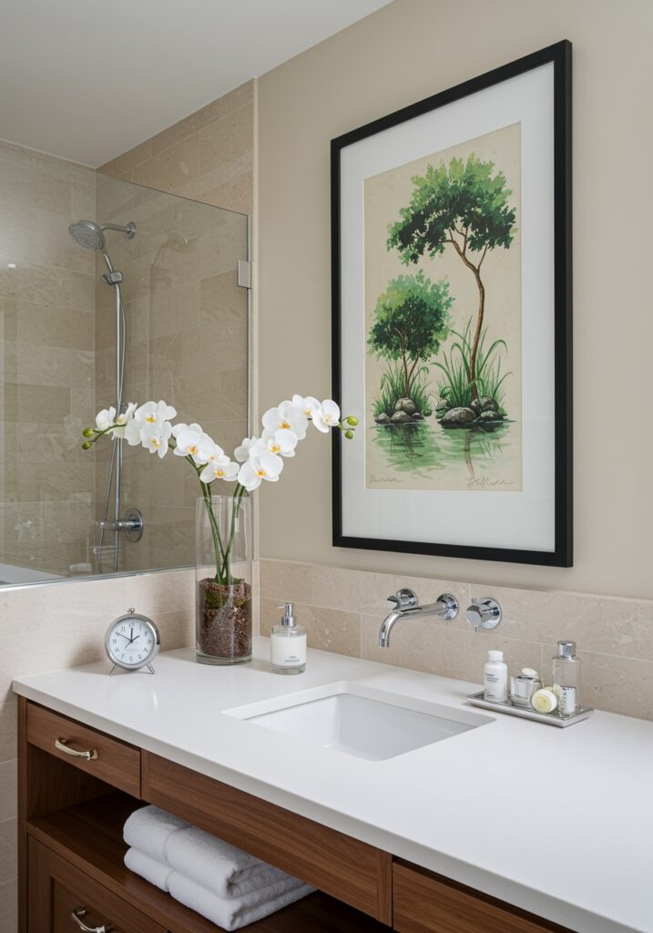 A small vase, soft artwork, or one statement piece is enough. This keeps the focus on relaxation.