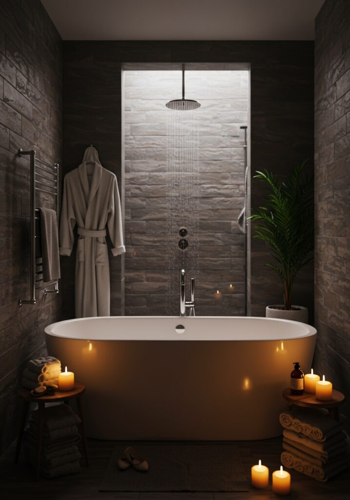 If I had to pick one feature that defines Spa Bathroom Ideas, it’s the freestanding tub. It instantly becomes the focal point.