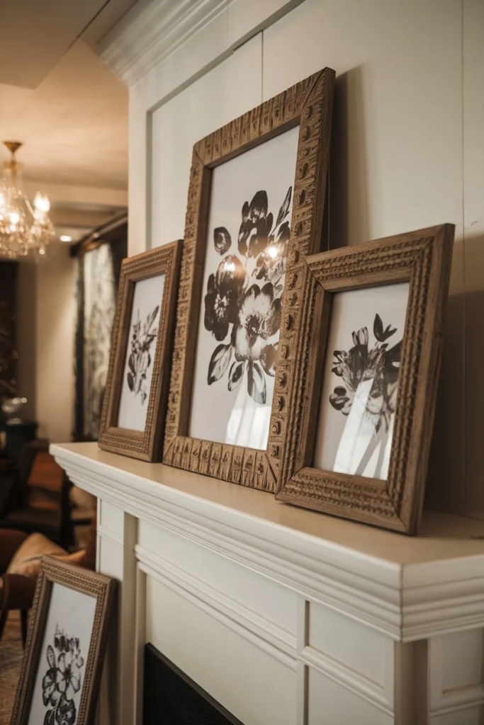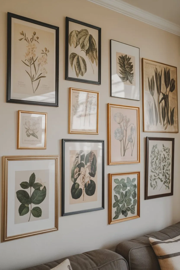 Botanical art brings nature indoors in a subtle way. Framed plant or floral prints add interest without overwhelming the space. This style works well in living rooms or hallways.