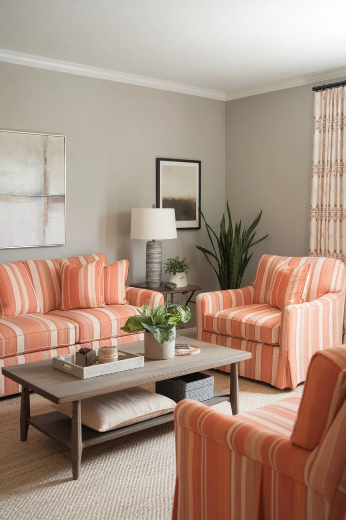 Stripes pair well with neutral furniture. They instantly refresh a room’s appearance.