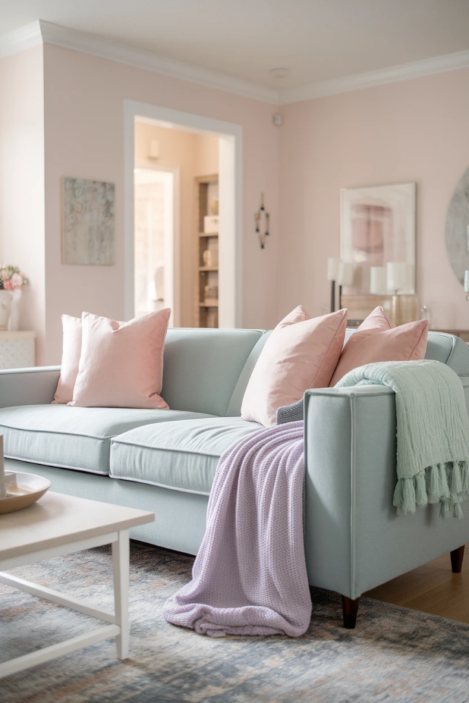 Using pastels consistently throughout your home helps maintain a balanced look. Even small touches can make shared spaces feel brighter and more inviting.
