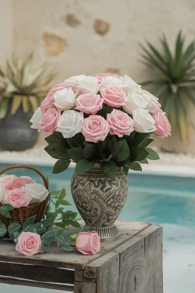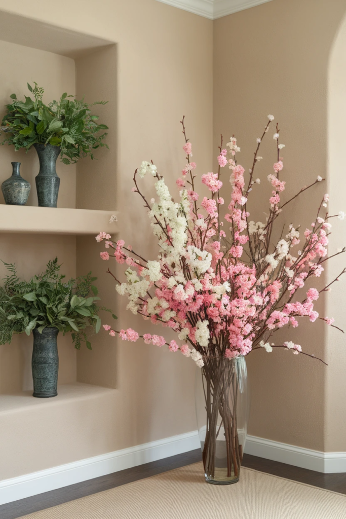Faux flowers are a great low-maintenance option for spring decor. High-quality artificial blooms look realistic and stay fresh all season. They’re perfect for busy homes or hard-to-reach areas.