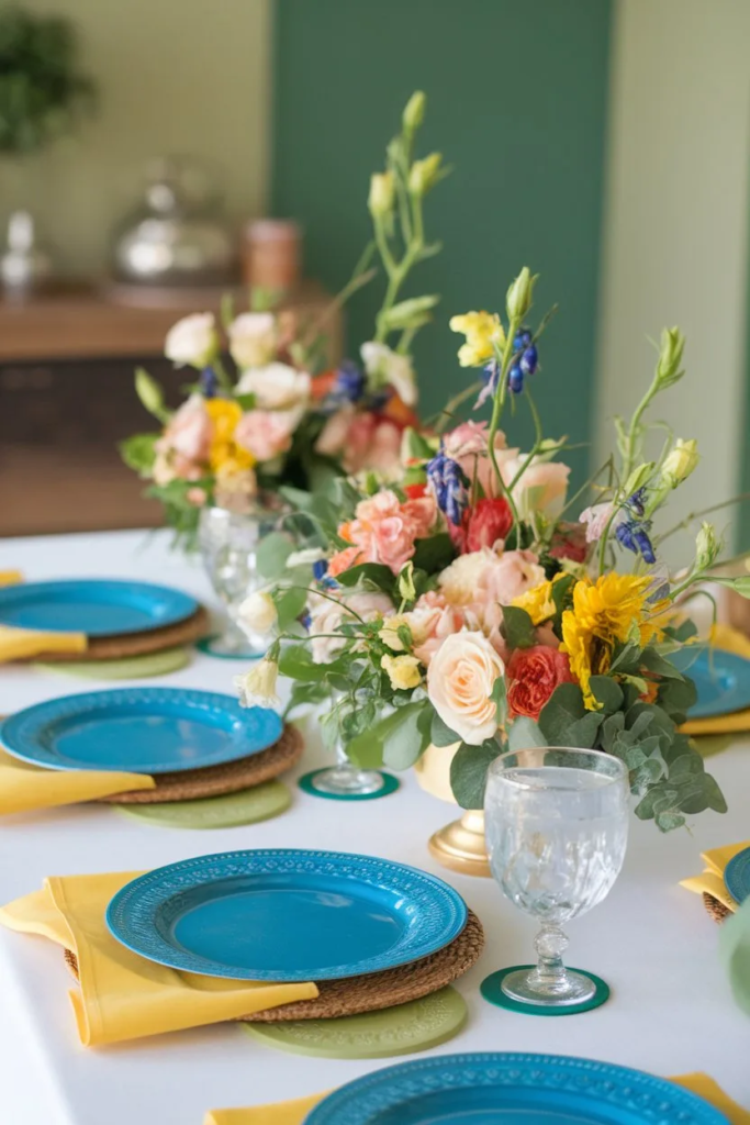 A spring-inspired tablescape makes everyday meals feel special. Light table linens and simple centerpieces help reflect the brightness of the season. Small details can completely refresh the dining area.