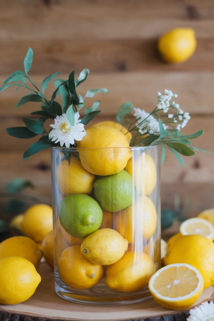 Paired with greenery, lemons create a balanced and lively centerpiece. It’s an easy way to make a bold statement.