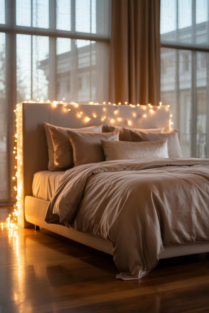 1. Add a Touch of Elegance with String Lights Above Your Bed