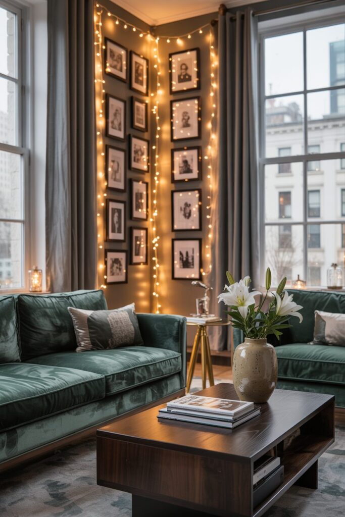 If you prefer a modern look, go for clean geometric layouts. If you like a more personal vibe, mix lights with pictures or notes.
