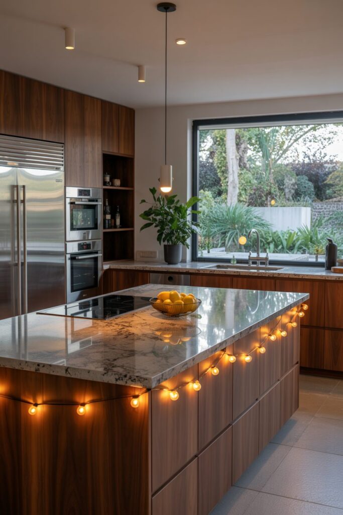 Lighting experts often suggest layered lighting in kitchens, and string lights are an easy way to add that extra layer without renovation.