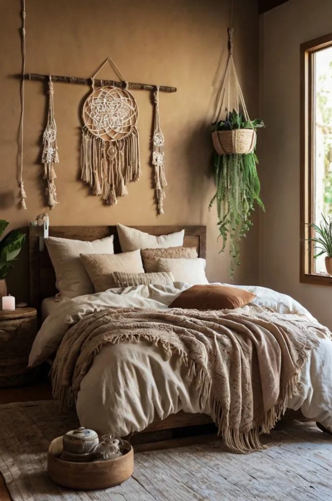 This look focuses on relaxed, natural elements like woven decor, hanging accents, and greenery. Together, they create a calm and free-spirited atmosphere. Using soft colors and organic materials helps the space feel grounded and peaceful. Coordinating textiles completes the overall look.
