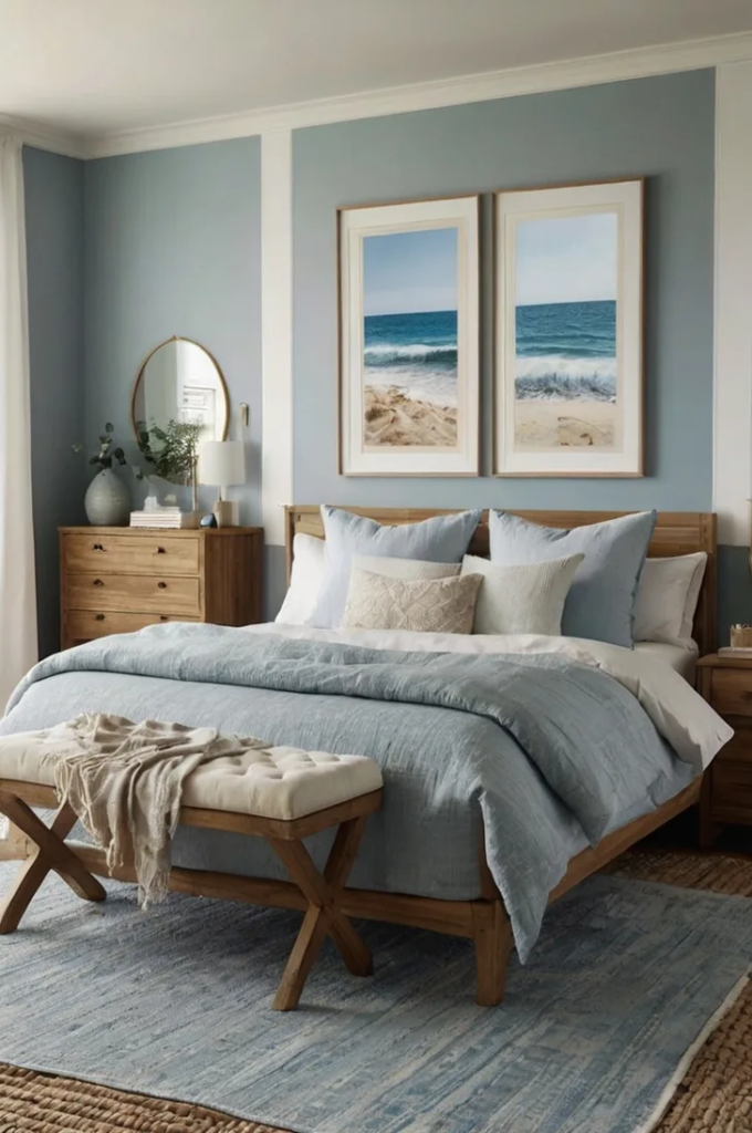Beach-inspired decor brings a light and airy feel to the room. Natural elements paired with soft coastal colors help create a relaxed environment. This style balances casual seaside charm with a polished appearance.