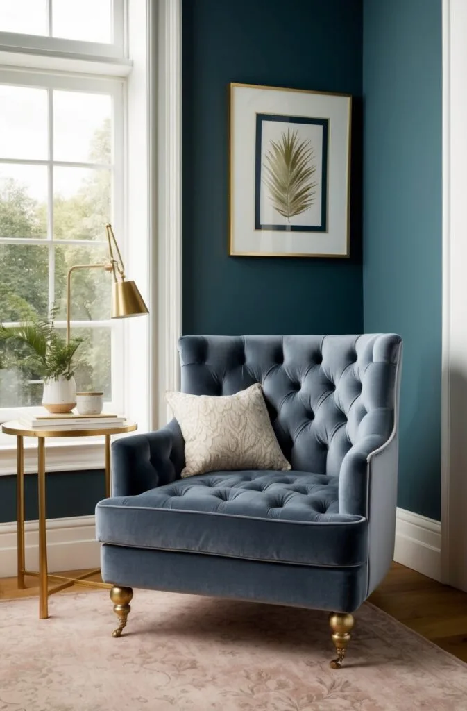A tufted velvet armchair adds a sense of comfort and refinement. The soft fabric feels inviting, especially in bedrooms meant for rest and relaxation. This chair often becomes a favorite spot for reading or winding down, and it pairs well with both neutral and dramatic color schemes.