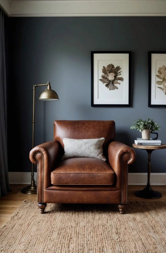 A leather club chair adds structure and depth to the bedroom. It feels solid and timeless, making it a strong choice for rooms with industrial or masculine styling. Over time, leather develops character, making the chair feel even more personal.