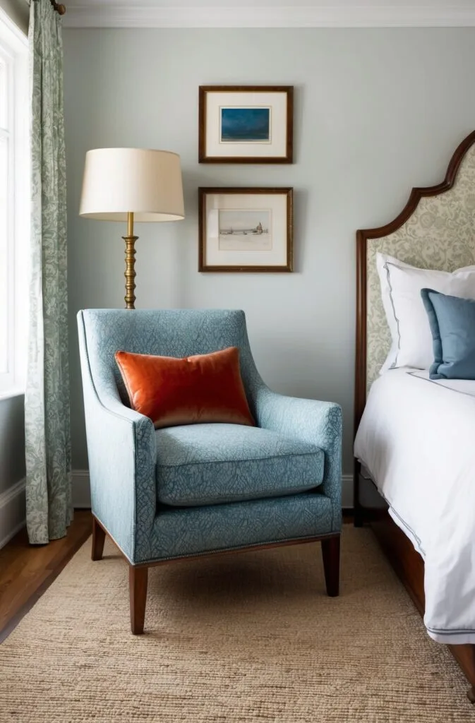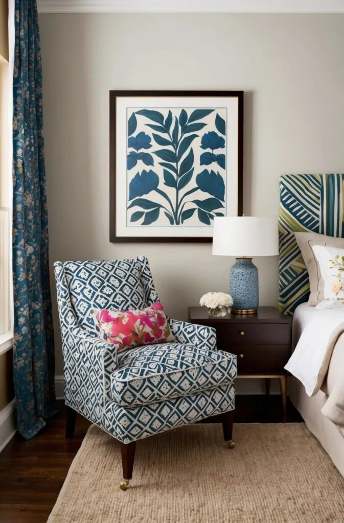 A bold patterned chair adds visual interest without requiring major changes. When paired with simple bedding or walls, it brings balance and depth. This option allows you to express style while keeping the room cohesive.