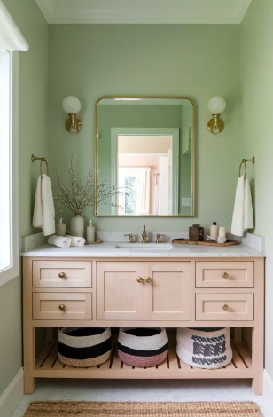 Sage green provides a calm, earthy backdrop ideal for walls, vanities, or décor. Pairing it with natural materials like wicker or brass achieves a polished, serene atmosphere. Using sage green thoughtfully can transform your bathroom into a tranquil, welcoming retreat.