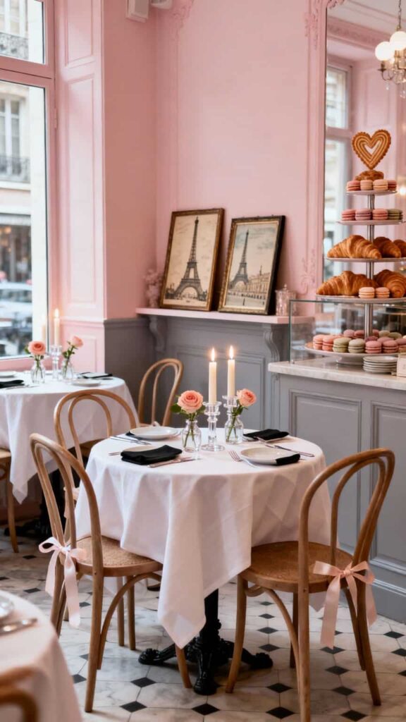 1. Rosy Parisian Café With Croissants And Candlelight