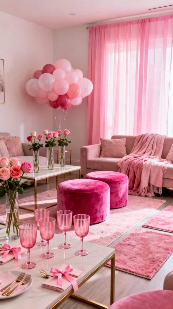 Focusing on one color allows this theme to feel cohesive and visually striking. By layering different shades and textures of pink, the space gains depth and richness without relying on excessive decor. Mixing affordable items with a few standout pieces creates a polished look that feels intentional and stylish.