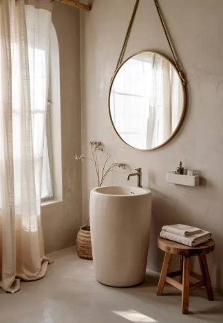 Stone basins can serve as a striking feature in Wabi Sabi Bathrooms while still maintaining a natural and understated appearance. Their thick, textured form draws attention without needing elaborate decoration. The organic shape and surface variations make each basin feel unique.