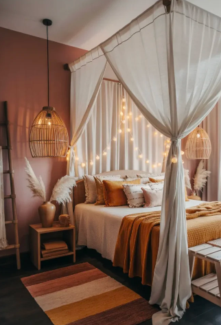 Layering textures and patterns is another great approach when exploring Whimsical Bedroom Ideas. A bohemian-inspired bedroom often feels relaxed and personal because it combines different fabrics, materials, and decorative pieces in a casual way.