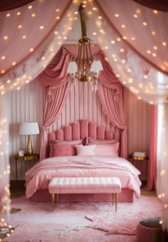 A pink-inspired bedroom often feels dreamy and welcoming at the same time. This approach to Whimsical Bedroom Ideas creates a space that feels sweet, calm, and beautifully balanced.