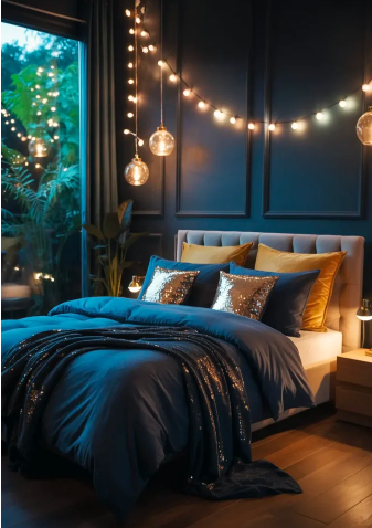 This design approach blends drama with comfort, creating a stylish yet inviting bedroom. Among Whimsical Bedroom Ideas, midnight blue themes often feel both bold and soothing.